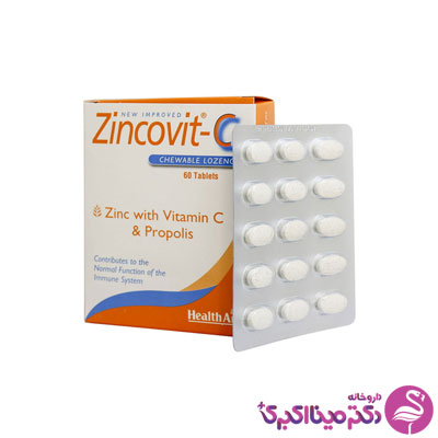قرص جویدنی و مکیدنی "Zincovit-C" کمپانی "Health Aid" ترکیبی ویژه و مؤثر در بهبود عملکرد سیستم ایمنی و تقویت آن می باشد. این ترکیب منحصر به فرد حاوی ویتامین C، روی و عصاره پروپولیس (Propolis Extract) است که می تواند با افزایش و تقویت سیستم ایمنی در پیشگیری از انواع آلرژی ها به ویژه در فصل بهار و انواع بیماری ها مانند سرماخوردگی، آنفلوانزا و گلو درد به ویژه در فصل زمستان مفید و مؤثر باشد. از این گذشته، این محصول علاوه بر داشتن طعمی مطلوب، برای بیماران مبتلا به سلیاک، عدم تحمل به لاکتوز، دیابت و گیاه خواران نیز مناسب است و فاقد هر گونه طعم دهنده و رنگ مصنوعی و نگهدارنده می باشد.